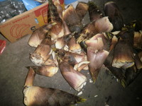 旬のタケノコ、孫たちはじぃじぃと初めてタケノコ採りに行ったそうです、土の中からちょこっと顔を出しているタケノコを見つけては大はしゃぎしていたみたい...
