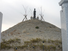 今日のように雪が降る中、文金高島田に角隠しをして、