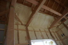 ただいま施工中の現場では、吹付断熱工事をしています。