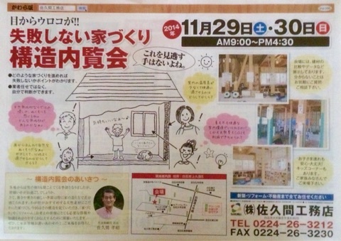 ご無沙汰しております寒くなって来ましたね息子たちの学校ではインフルエンザがちらほら…気をつけないといけませんねさて明日.明後日と白石で構造内覧会があ...