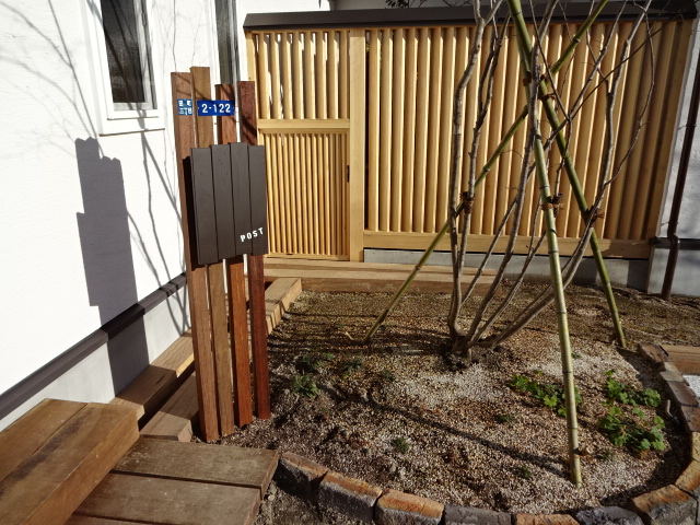 ウットデッキであまった枕木を立てて、そこにくっつけてみました。