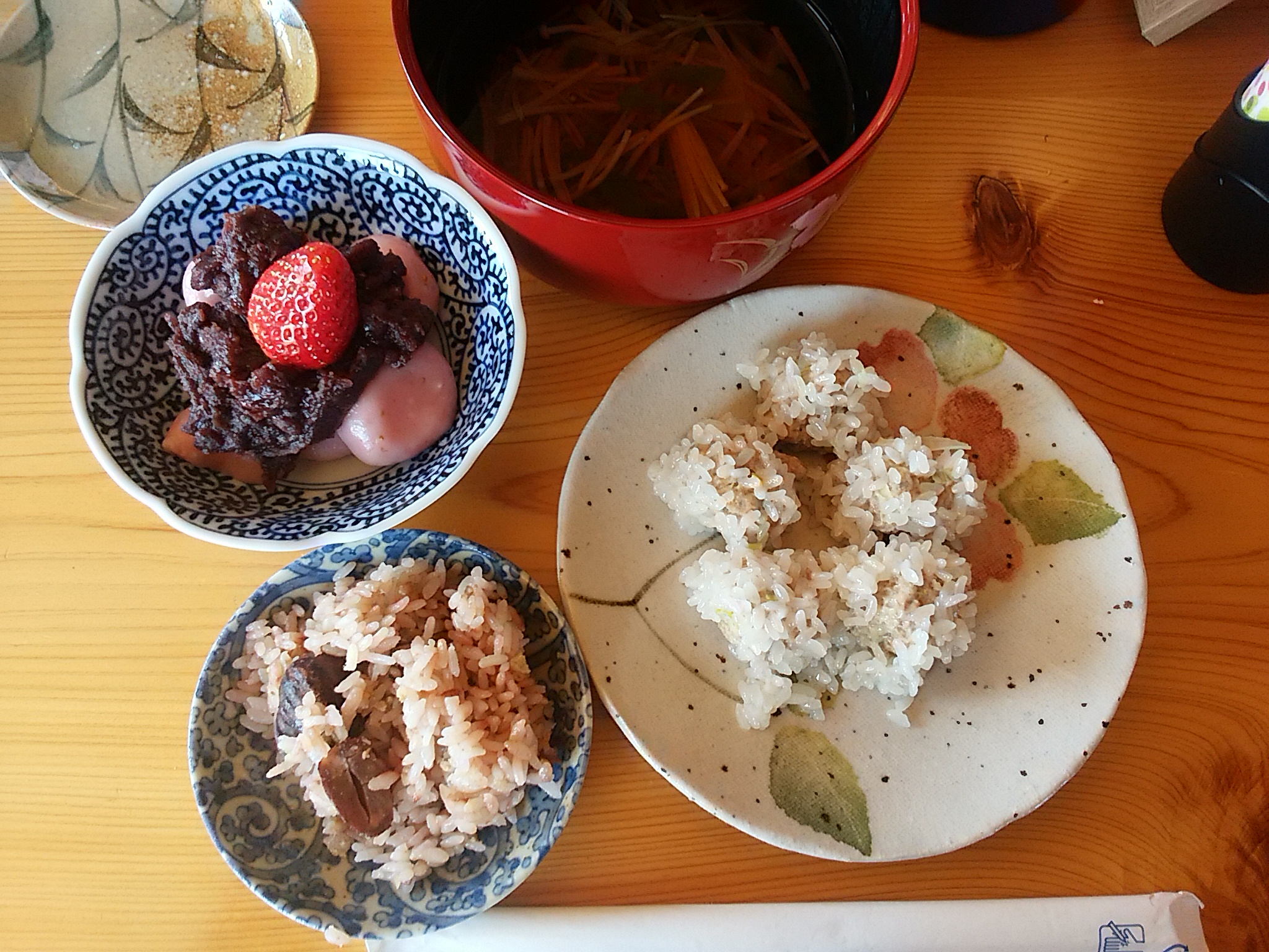 変わりちらし寿司、やイチゴを練り込んだおだんご