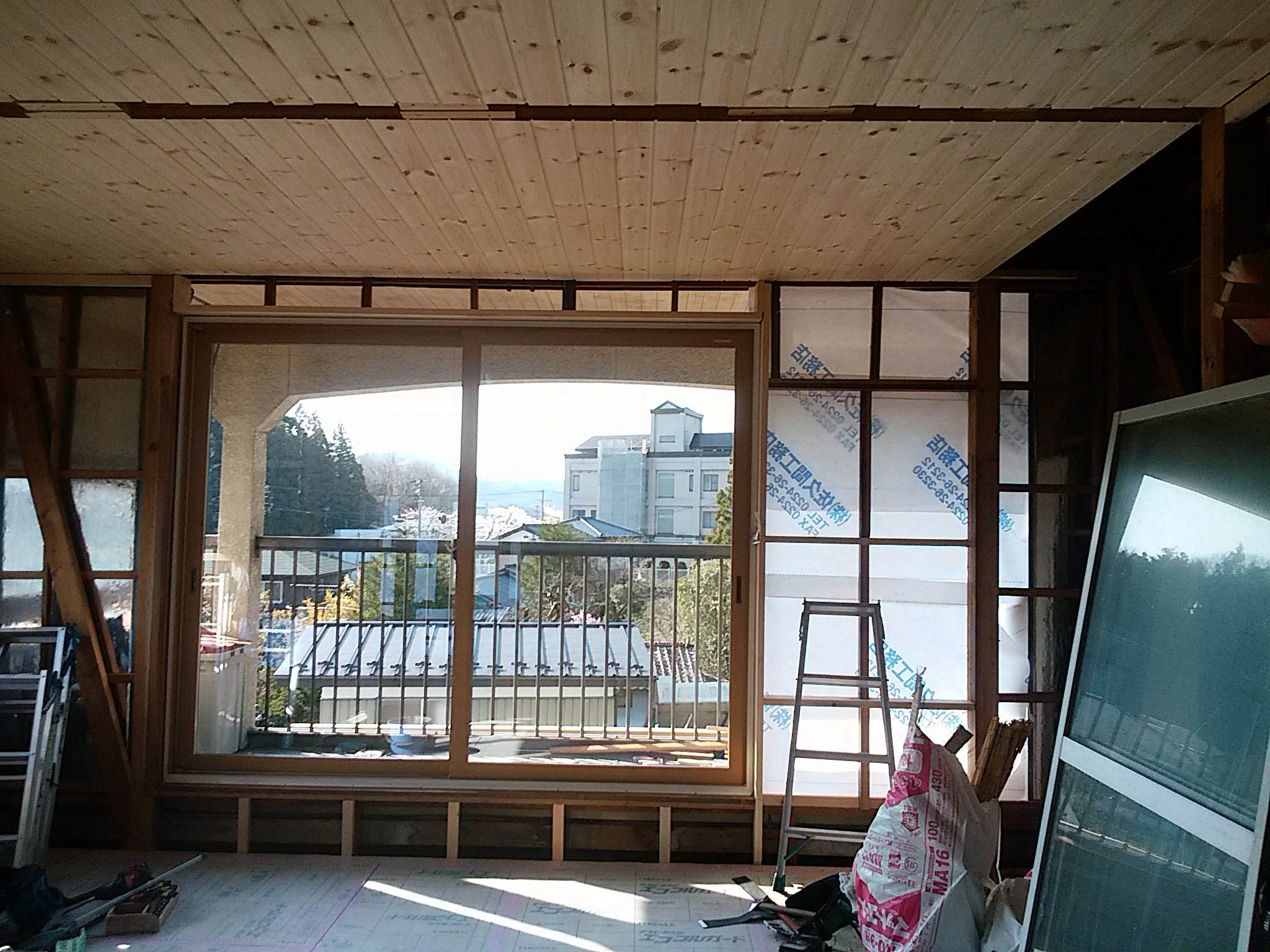 端から端までサッシだったのを耐震壁をつけてと