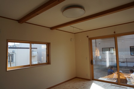 リビングの床には桐材を使用。調湿効果があり、快適に過ごせます。