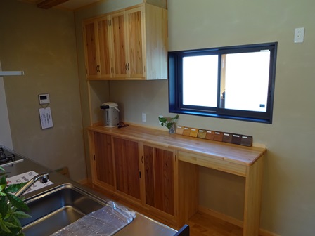 手作りキッチン収納棚 木のぬくもりと風合いがキッチンの空間を変えます。