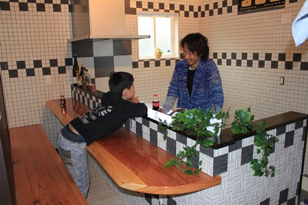 タイル職人であるお施主様が施工。場所場所で色々な雰囲気を感じられます。