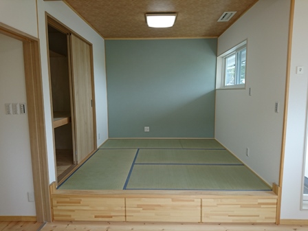 【2階洋室】 洋室にある小上がり和室。 段差部分は引出しになっており、収納力抜群です。