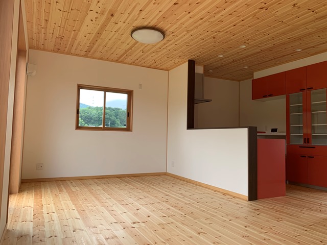 【リビング・ダイニング】 家族の団欒でにぎやかな空間になる広々17.5帖。そして経年につれ味わいが出てくる赤松材のフローリング。