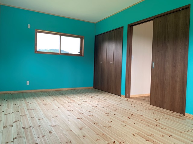 【洋室】 広々10.5帖のお部屋。ブルーの壁紙はリラックス効果もあり、空間も広く感じます。