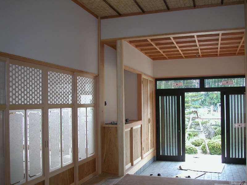 母屋は、築約7年経ち、約2年前に奥様の趣味の部屋として、離れを施工させて頂きました。提案できる無垢の材料をふんだんに使わせて頂いて、趣味が沢山詰まった空間になっていました。長い間お付き合いさせて頂くうえにとてもきれいに大切に住んでいただける事が肌で感じる事が出来ました。
