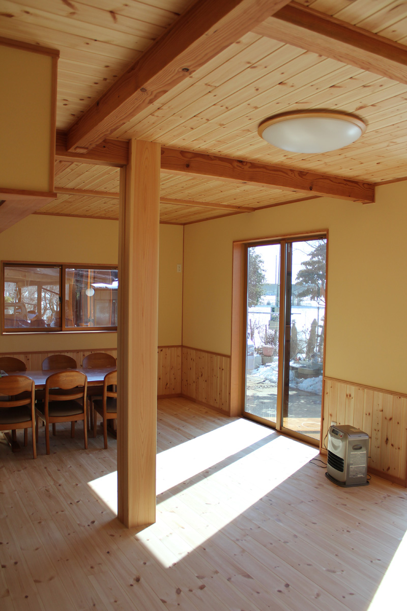 お家のリビングに杉材の 大黒柱遊びに来た孫たち の背くらべができますね