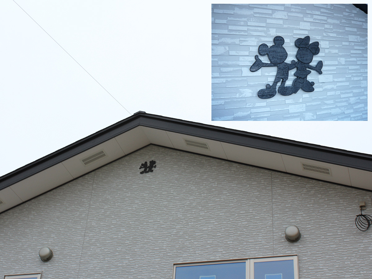 外観や壁飾りには、お施主様の 大好きなキャラクターを取り入れて