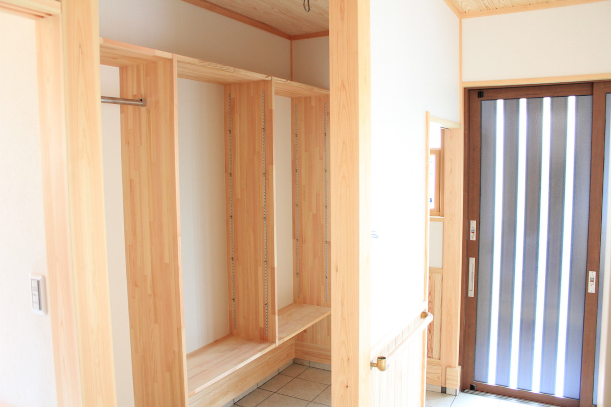 玄関 シューズクローゼットを設けて、帰宅したらコート等かけられるように。