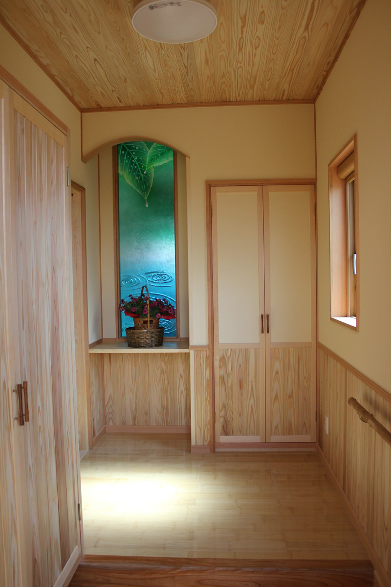 玄関を入ると奥様こだわり の素敵な「ステンドグラス」 光を浴びて色鮮やかな輝き☆