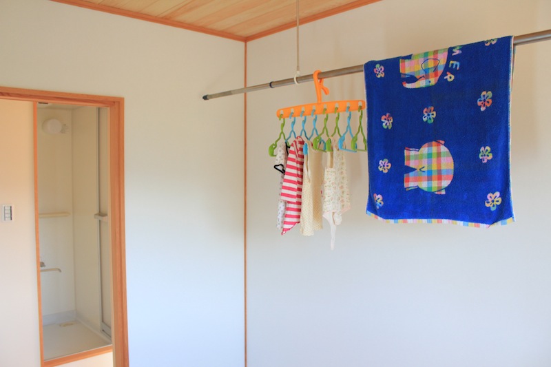 シャワールーム時間帯や天候をきにせず行えるランドリールーム。向かいには家族に気兼ねなく入浴できるシャワールーム。