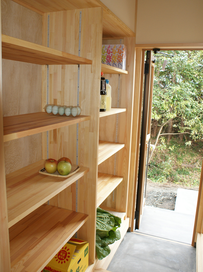勝手口収納は自慢の野菜の食品庫