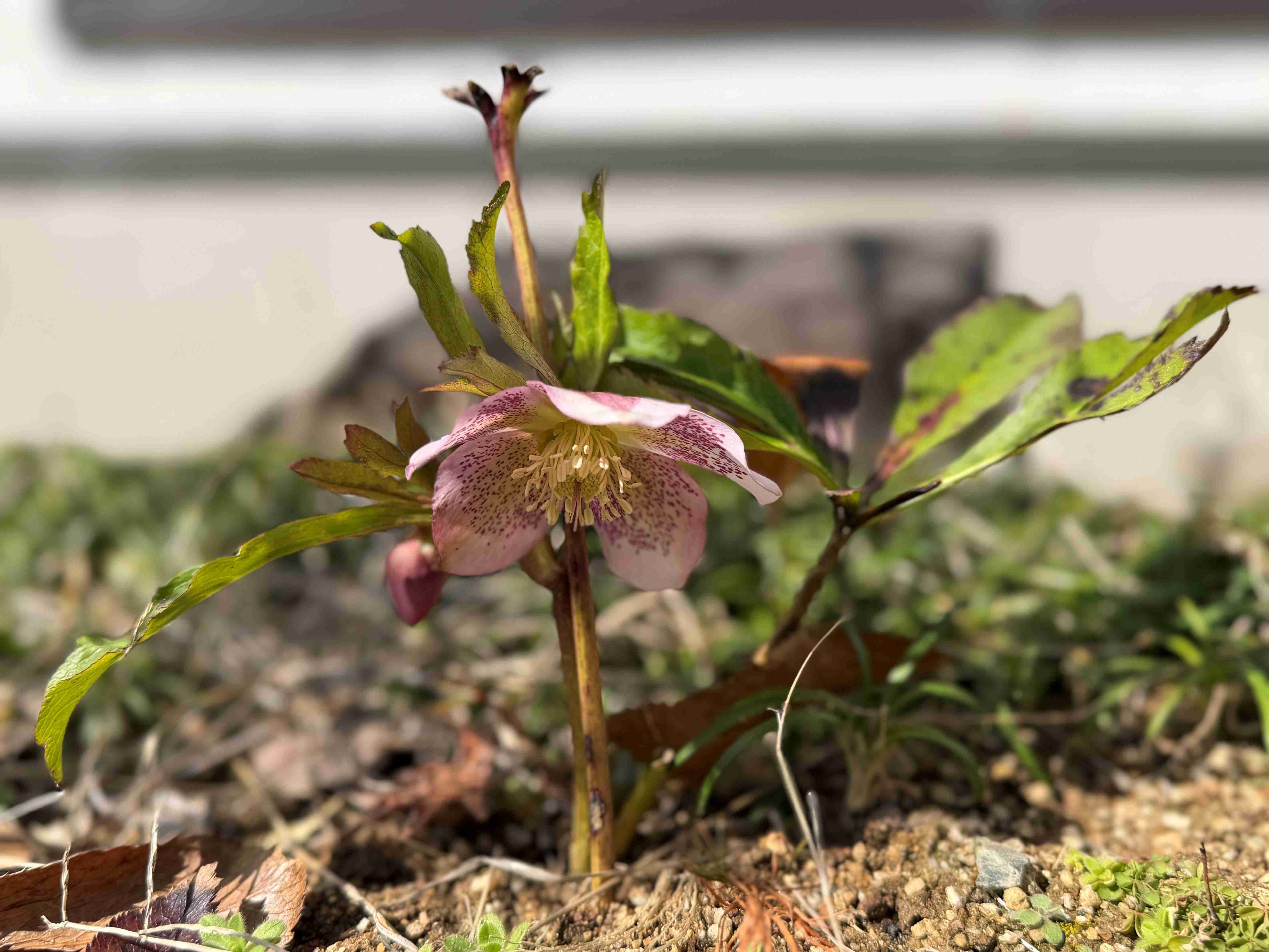 そして小さな花壇のクリスマスローズにやっと花がつき咲きました!