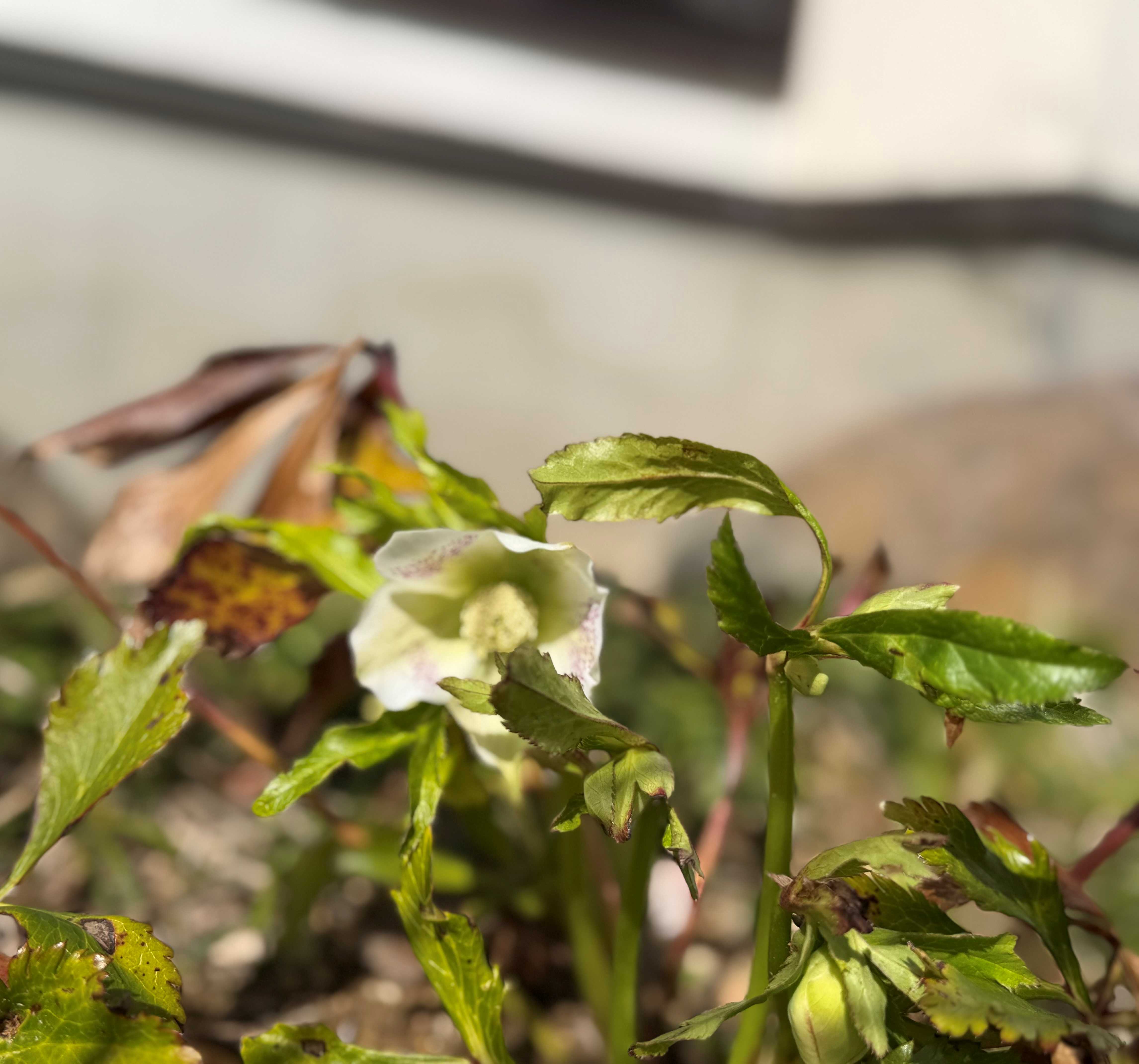 そして小さな花壇のクリスマスローズにやっと花がつき咲きました!