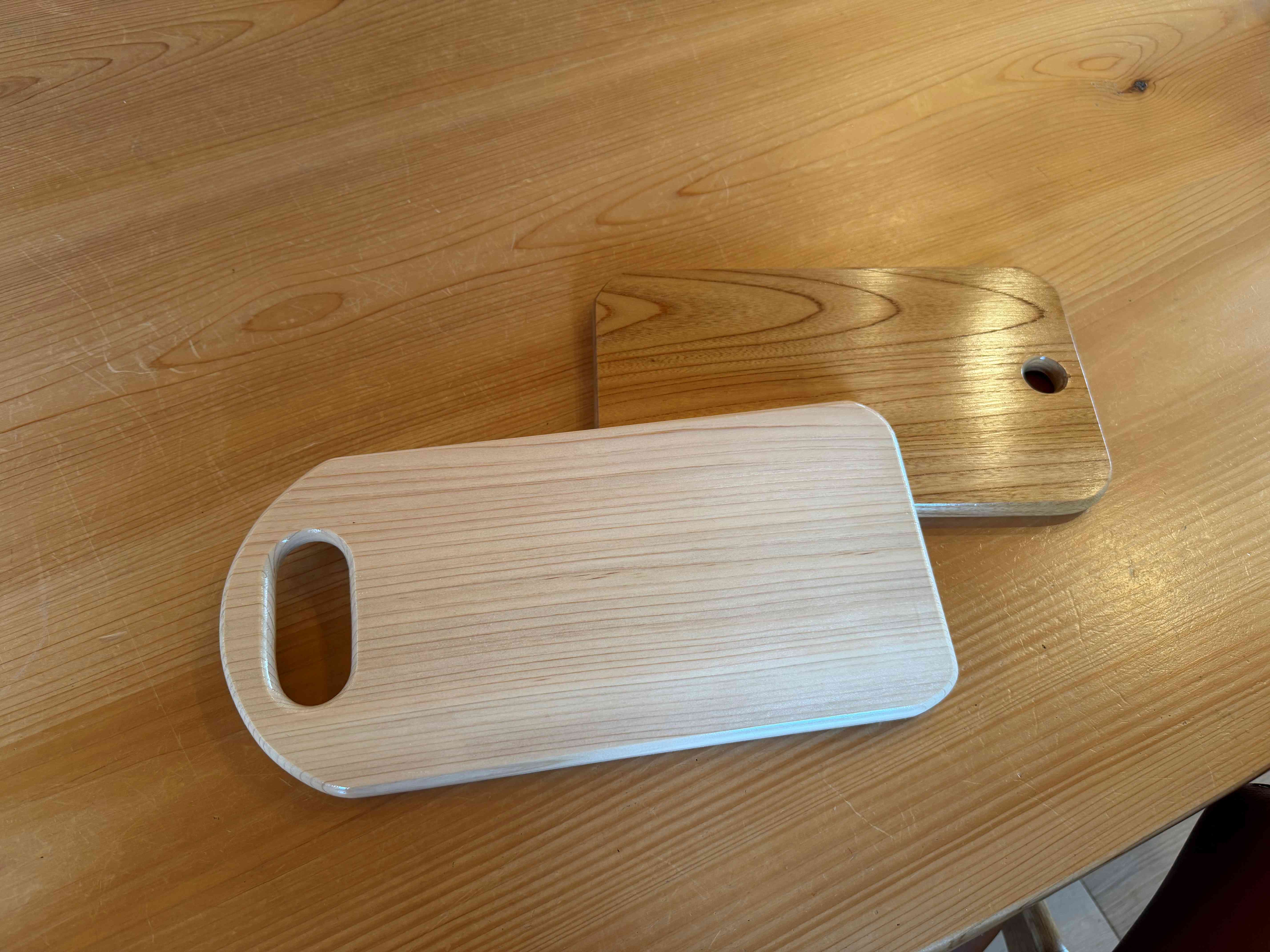 天然木の青森ひば・ひのき・けやきなどのカッティングボードも販売しております。